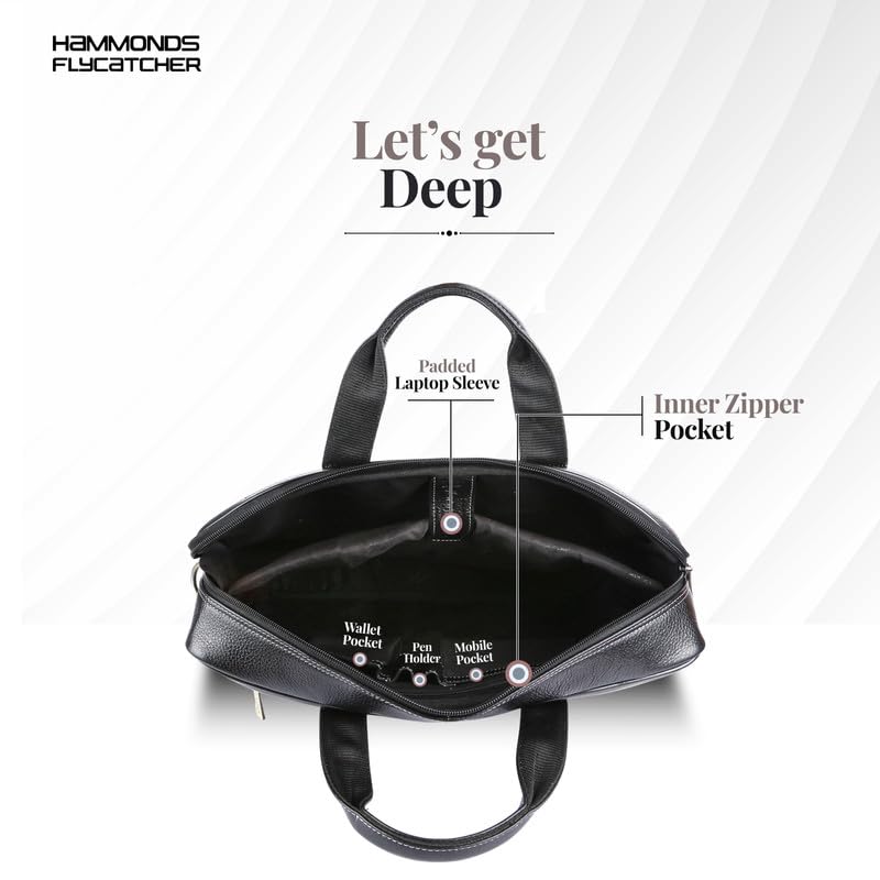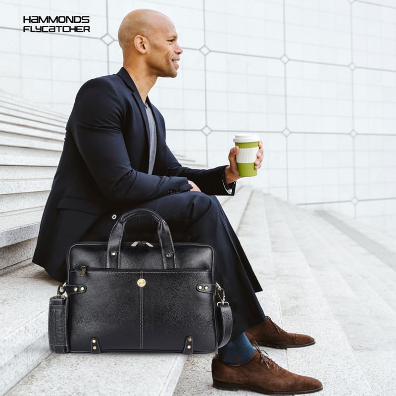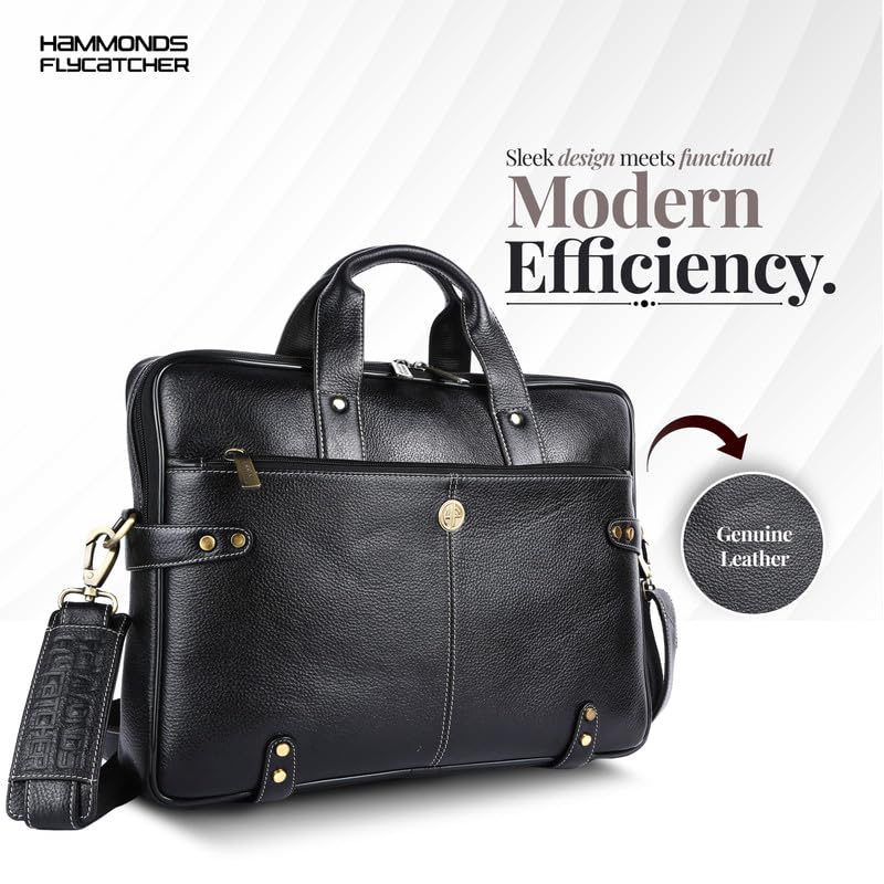 Hammonds Flycatcher Genuine Leather Laptop Bag For Men (Black)