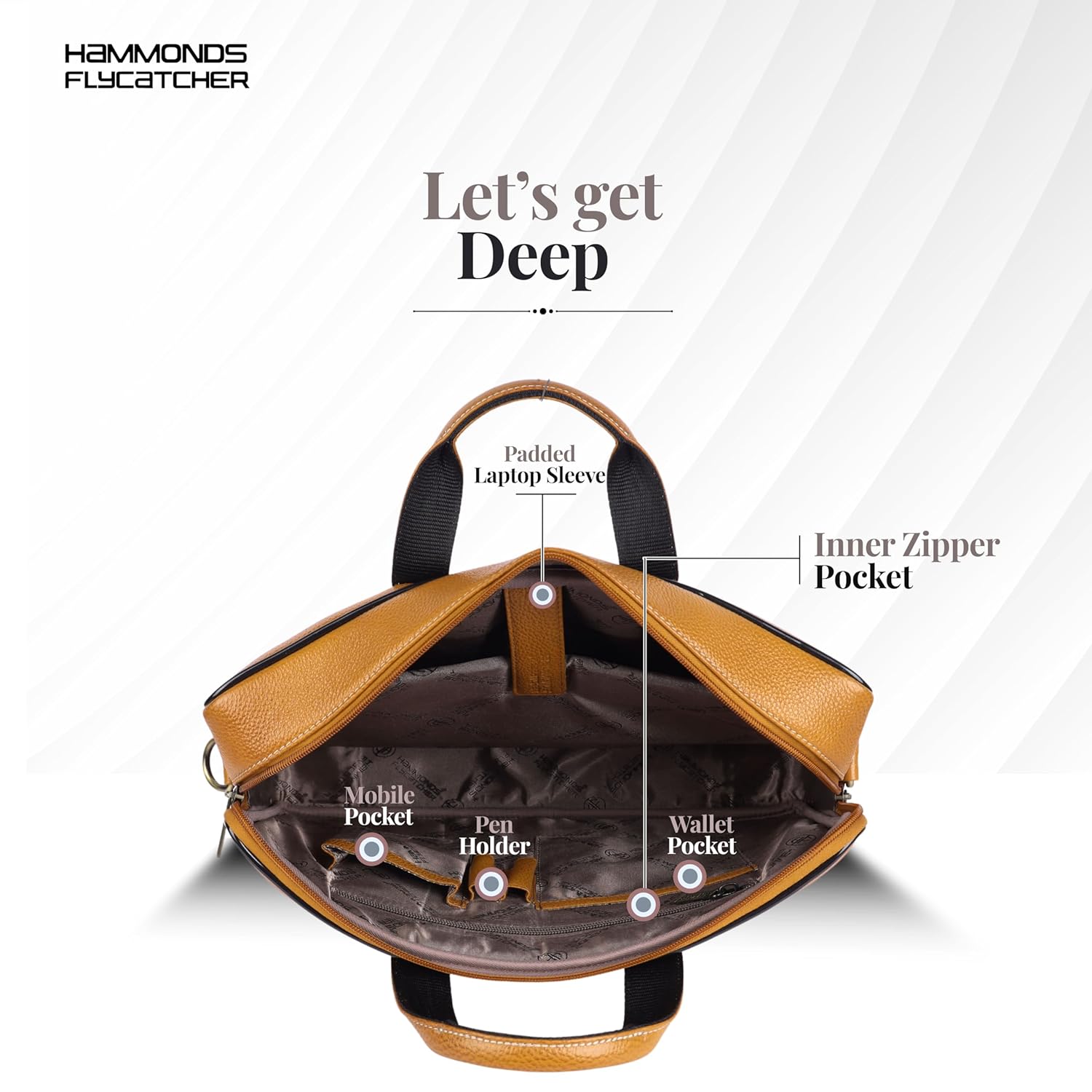 โ Spacious and Organized: Featuring 1 main compartment, 1 padded laptop compartment, 1 inner zipper pocket, 1 wallet pocket, 1 mobile pocket, and 2 pen slots, this hammonds flycatcher leather laptop bag for men keeps all your essentials neatly organized. This men office bag ensures you have everything you need at your fingertips.